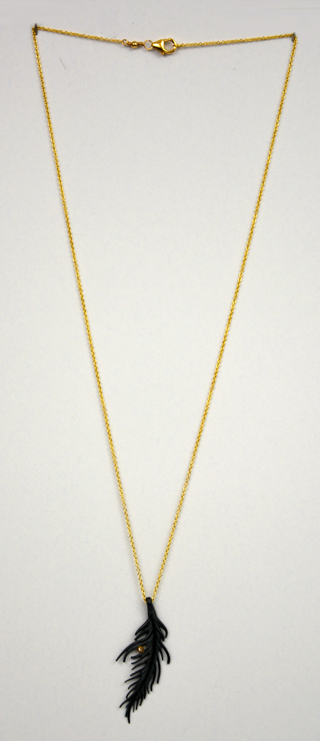 | Medium | 18K gold setting & diamond, gold fill chain, oxidized silver feather |