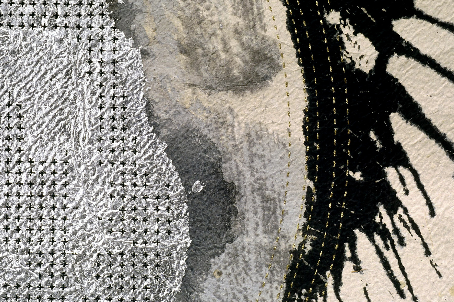 | Medium | abaca washi, acrylic, aluminum leaf, indigo pigment, Mixed media sashiko; sumi ink, thread |