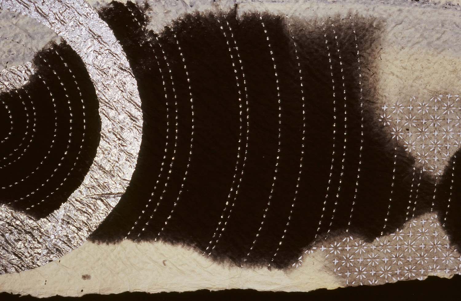 | Medium | abaca washi sumi ink, aluminum leaf, indigo pigment, iridescent acrylic medium, Mixed media sashiko, thread |