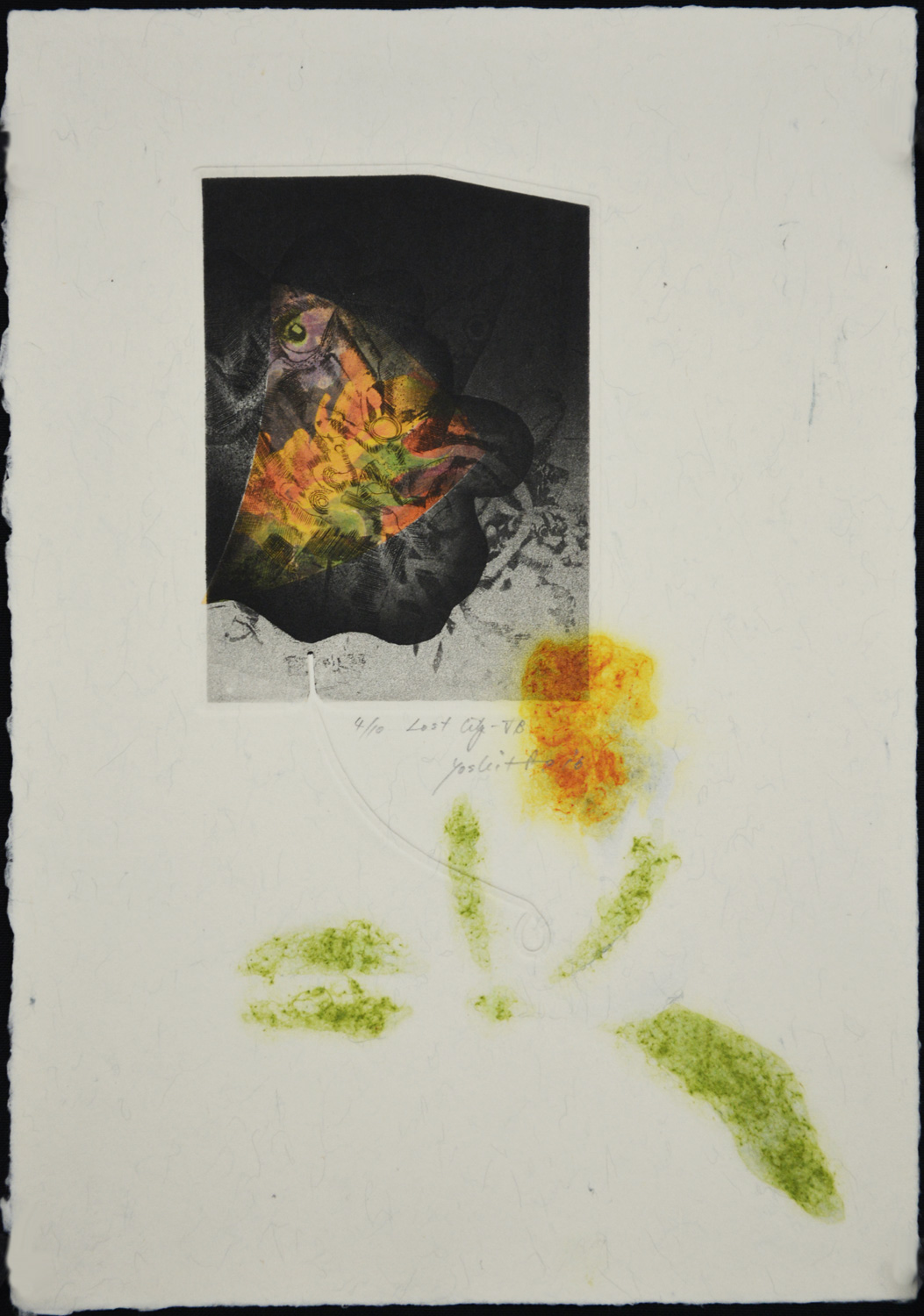 The artist makes his own Japanese paper. Each edition has a unique watermark, and some prints have holes in the paper included in the design.