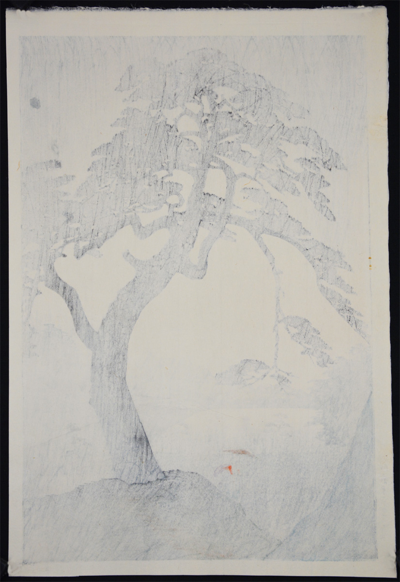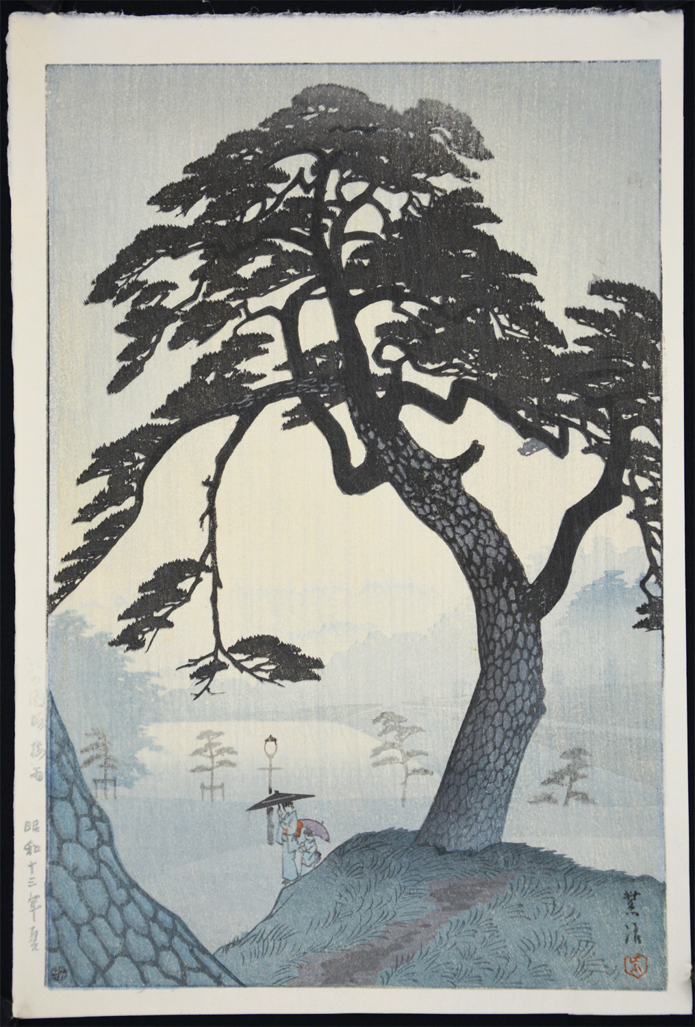 | Signature & Seals | 6mm Watanabe publisher seal, brushed signature and red artist seal within image; Title and date printed left margin |