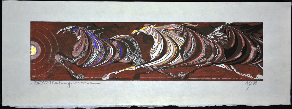 Particularly stirring movement in these horses. gold leaf used on the sun, and silver for the dashing steeds