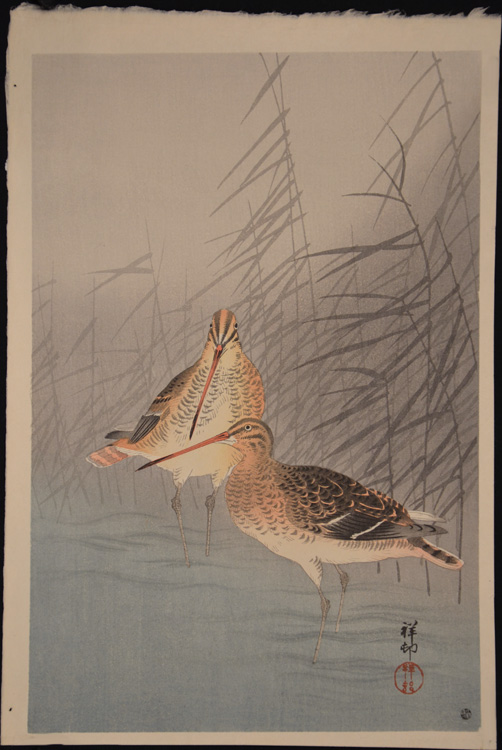 | Signature & Seals | 6mm Watanabe publisher"s seal, Brushed signature with red artist seal |