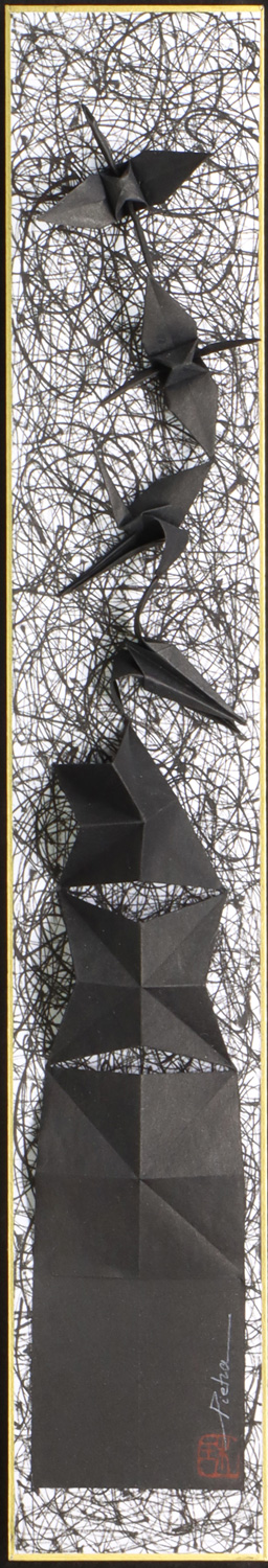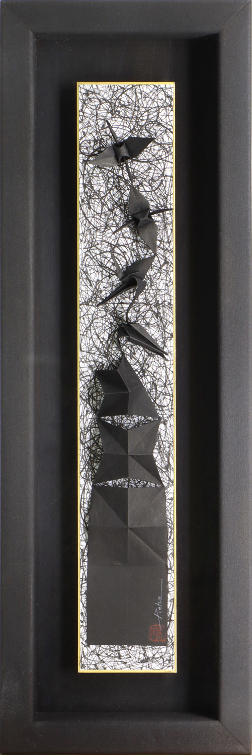 | Medium | Rentsuru–folded origami cranes in a single continuous sheet of paper, with sumi ink |