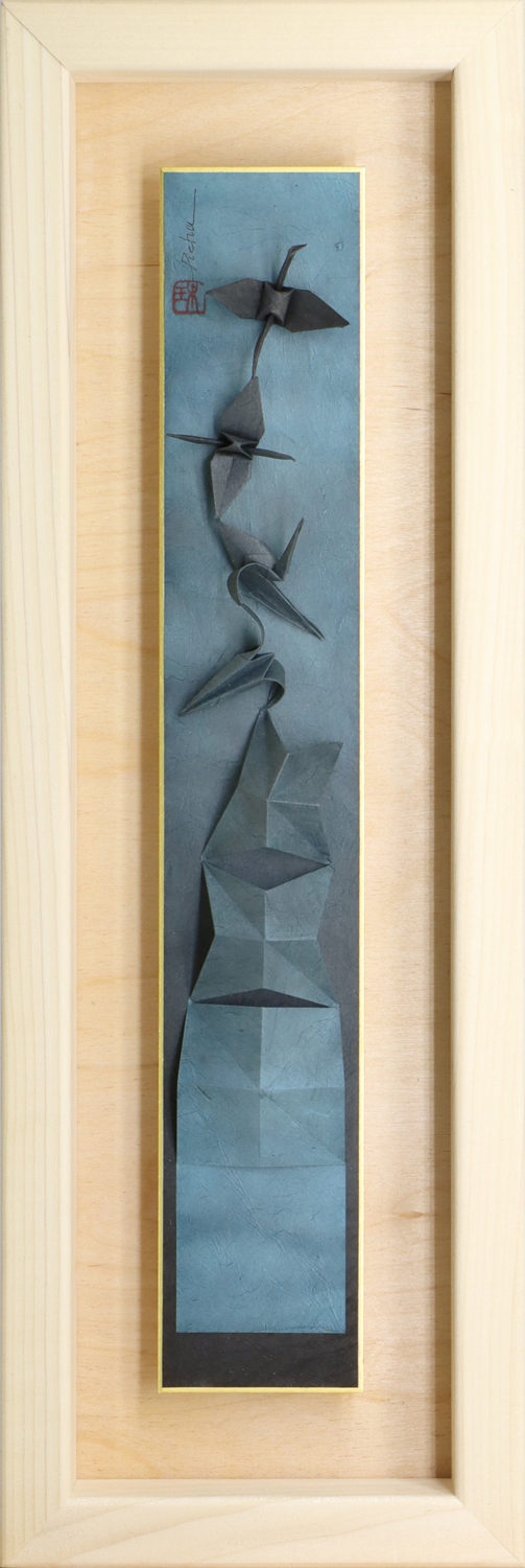 | Medium | black paper folded origami cranes–in a single sheet |