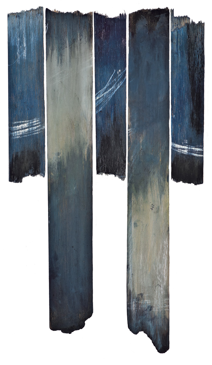 | Medium | Balsa wood (burned), charcoal from balsa wood, Indigo watercolor, pastel |